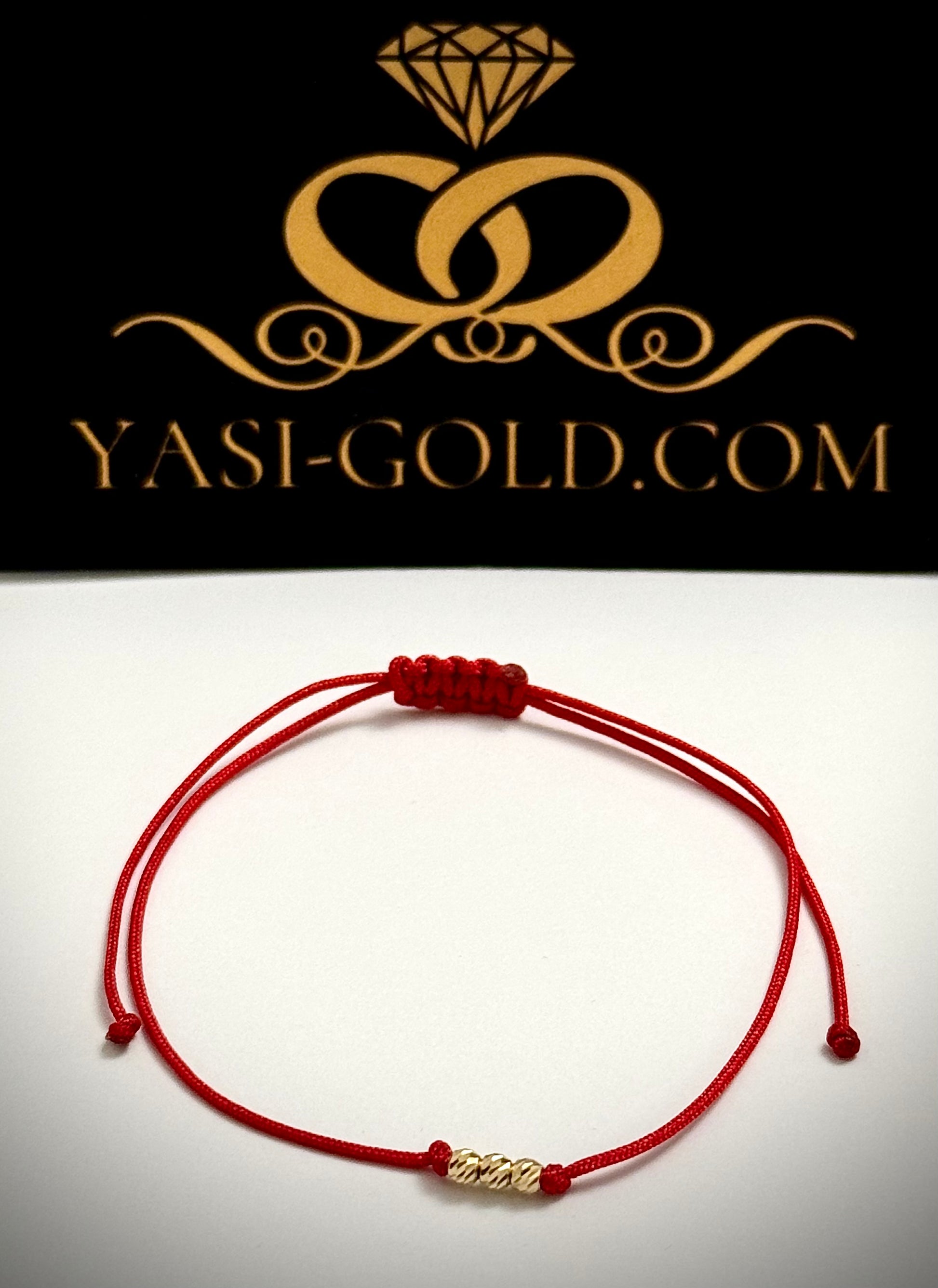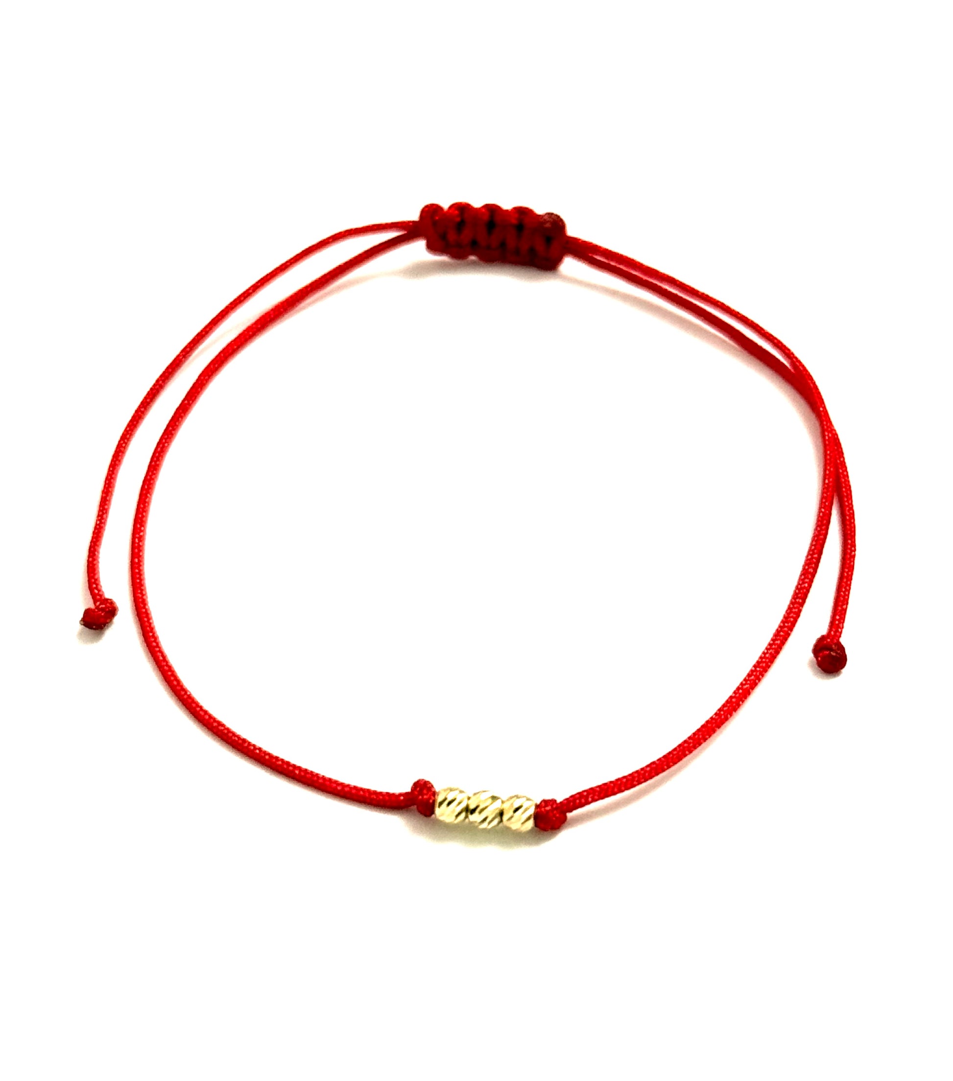 Елегантна гривна от червен конец, носеща символика за защита, късмет и положителна енергия. В центъра ѝ са разположени три златни топчета, които придават изискан блясък и усещане за хармония. Числото три традиционно се свързва с баланс, сила и стабилност – идеална комбинация за ежедневен талисман.